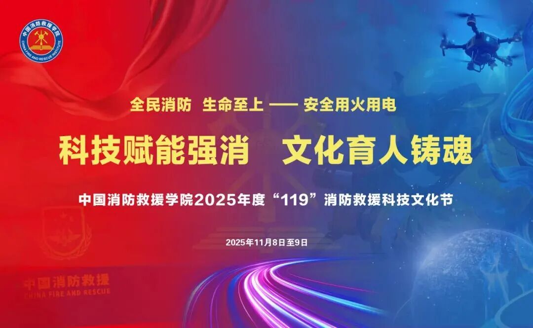 在习近平总书记向国家综合性消防救援队伍授旗致训词七周年暨第34个全国消防日之际,中国消防救援学院于11月8日至9日在北京昌平举办2025年“119”消防救援科技文化节。活动以“科技赋能强消、文化育人铸魂”为主题,设三大板块20余项活动,集中展现消防救援创新成果。